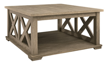 Open the door to modern farmhouse style with this classic sofa table that features a light natural oak wood grain pattern. The open cross-buck side panel detail and spacious lower shelf add even more rustic appeal.